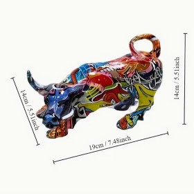 Majestueuse sculpture de taureau Wall Street graffiti - Statue de taureau en résine, adaptée pour la décoration de la maison et du bureau, parfaite pour les tables, les bars et les présentoirs - Cadeau idéal pour la maison